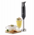 A hand blender, also known as an immersion blender, is a kitchen appliance used for blending or pureeing food. It consists of a long, slender shaft with a blending head at one end that is immersed directly into the food or liquid being blended. The motor is located in the handle, which is held by the user, making it a convenient and easy-to-use tool. Hand blenders are ideal for tasks such as blending soups, sauces, smoothies, and baby food. They are also commonly used for whipping cream and beating eggs. Some hand blenders come with additional attachments such as chopper cups and whisk attachments, allowing for versatility in the kitchen. They are usually lightweight and cordless, making them easy to use and clean.